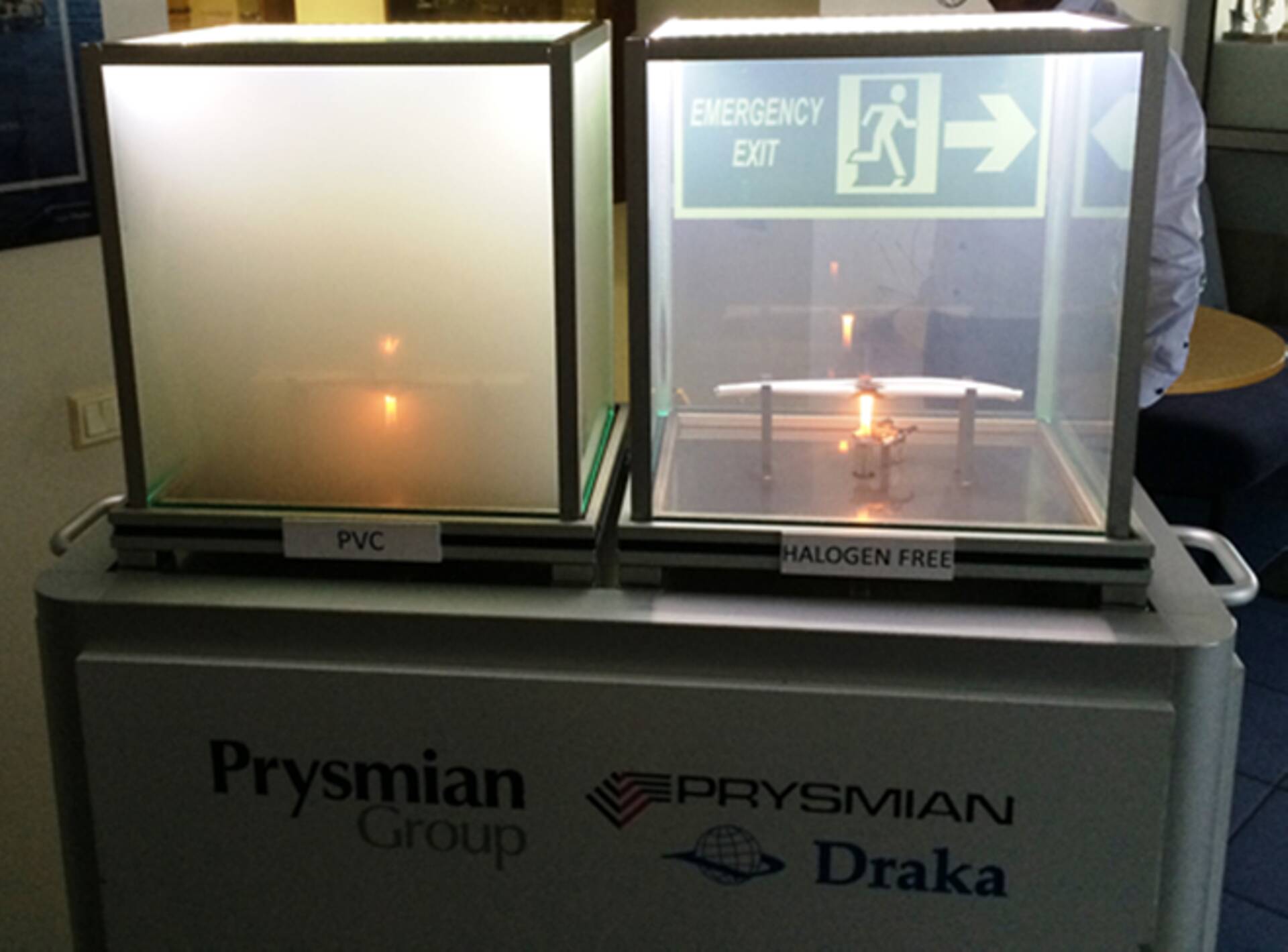 В этом видео можно увидеть, как горит кабель PVC и не содержащий галогенов кабель. Разница огромная. При пожаре не содержащие галогены кабели выделяют намного меньше густого, токсичного дыма.