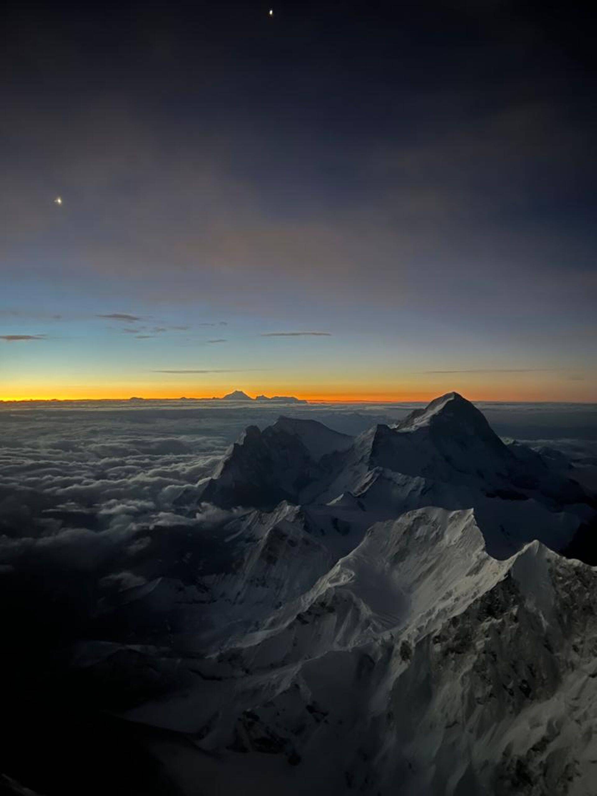 Мы 21 мая добрались до четвертого лагеря на 8000 метров - пришли в районе 11 утра, вечером должен был быть штурм вершины. Но поднялся сильный ветер, пришлось ждать два дня в «зоне смерти» (высота, на которой уровень кислорода в воздухе недостаточен для поддержания жизни человека и приходится пользоваться кислородным оборудованием, прим. ред.). С 23 на 24 мая нарисовалось более-менее сносное погодное окно, да и кислород уже почти закончился, так что вариантов не было - решили идти. Погода начала портиться, наше «окно» оказалось короткое, сомнительное, и меня отправили пораньше. Я шла без подготовки, чтобы времени было с запасом… успеть к 5 утра. Но так получилось, что уже в час ночи я стояла на вершине в абсолютной темноте.