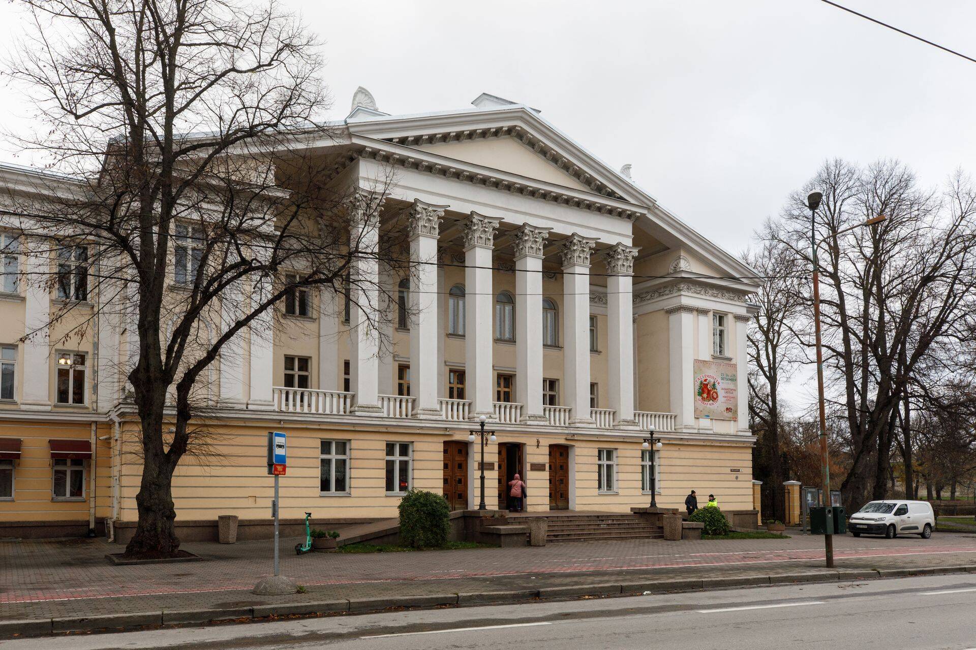Еще один типичный представитель сталинской архитектуры, кинотеатр Sõprus украшен венками и пятиконечными звездами.