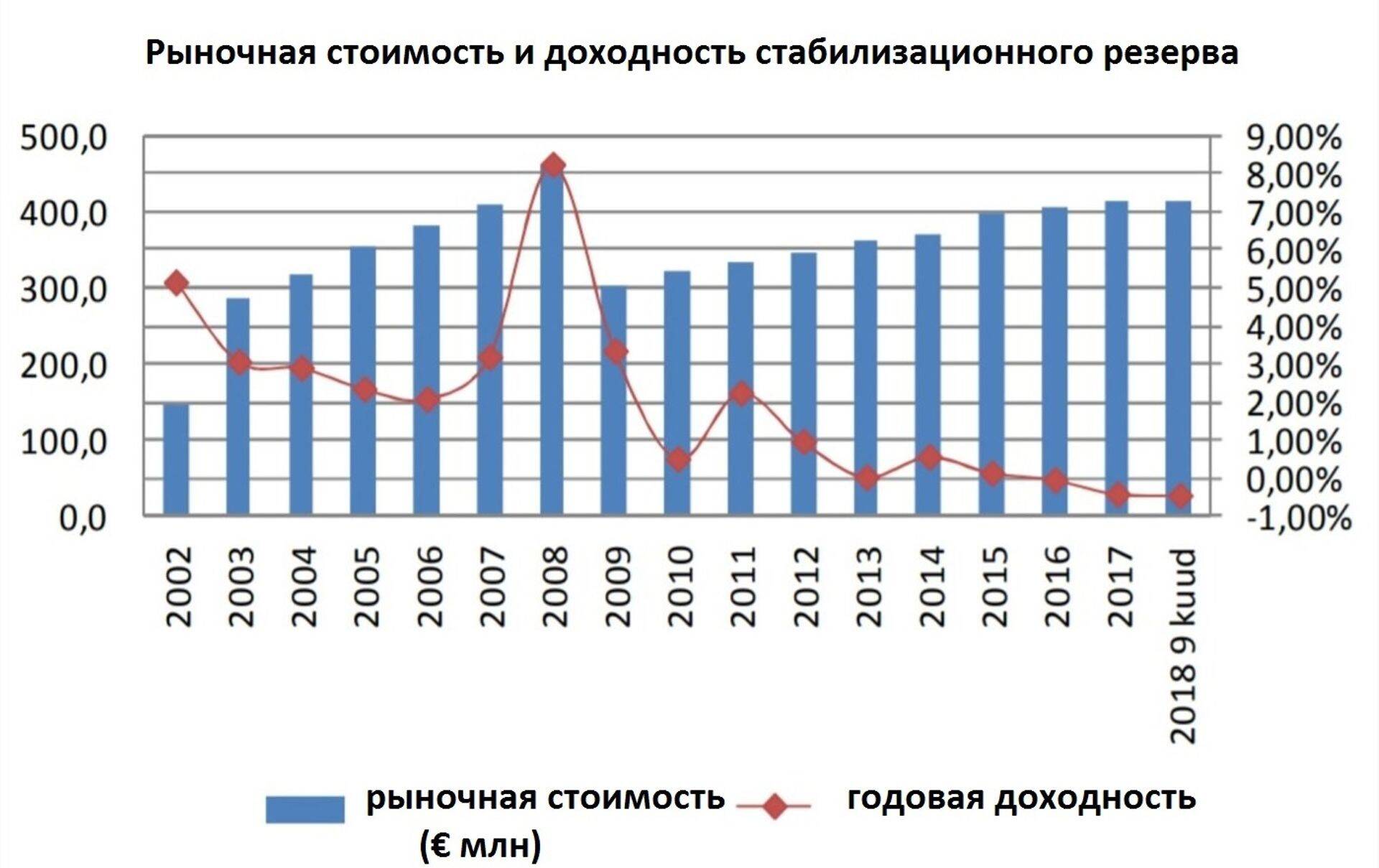 На конец сентября в стабилизационном резерве Эстонии рыночная стоимость активов составляла 412 миллионов евро, однако в последние годы доходность резерва была негативной, сообщает министерство финансов.