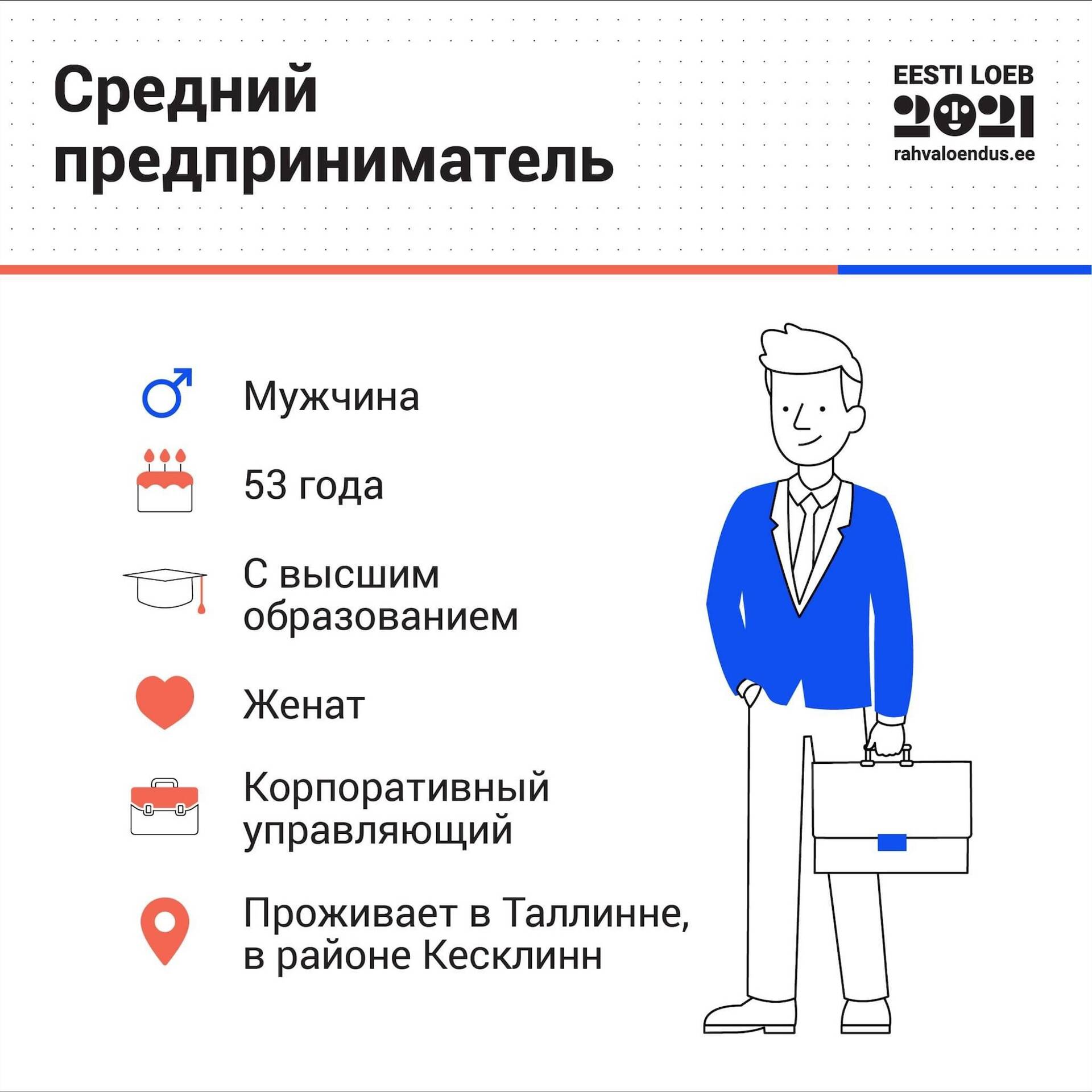 Согласно результатам переписи населения в Эстонии проживает 642 391 занятое лицо. Большинство занятых (96%) являются на своем основном рабочем месте наемными работниками, 4% – предпринимателями. По сравнению с женщинами предпринимателей среди работающих мужчин больше, их доля образует 6% от всех занятых мужчин. Среди женщин наемными работниками являются 97%, и лишь 3% в основном занимаются предпринимательством.